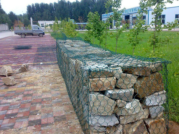 包塑石籠網(wǎng)是使用機(jī)器將金屬線材單向搓捻兩周編織的六角形網(wǎng)(六角網(wǎng)) 制成的網(wǎng)箱,厚度在0.15-0.5m(含0.5m),又稱石籠和護(hù)墊,石籠網(wǎng)墊由隔板分成若干單元格,為了加強(qiáng)石籠網(wǎng)墊結(jié)構(gòu)的強(qiáng)度,所有的面板邊端均采用直徑更大的鋼絲。