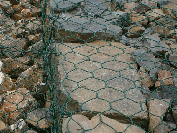 綠濱墊具有固堤防沖刷的作用, 固濱籠工藝是指將特種鋼絲由專用機(jī)械編織成雙絞、蜂巢形網(wǎng)目的格網(wǎng)片,根據(jù)工程設(shè)計要求,裁剪、設(shè)計、組裝成箱籠并裝入塊石等填充料后連接成一體的結(jié)構(gòu),用作提防、路基防護(hù)工程。