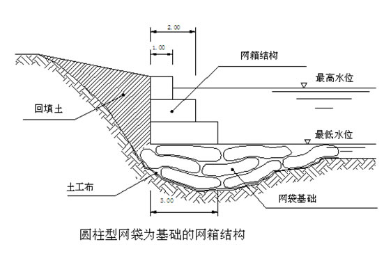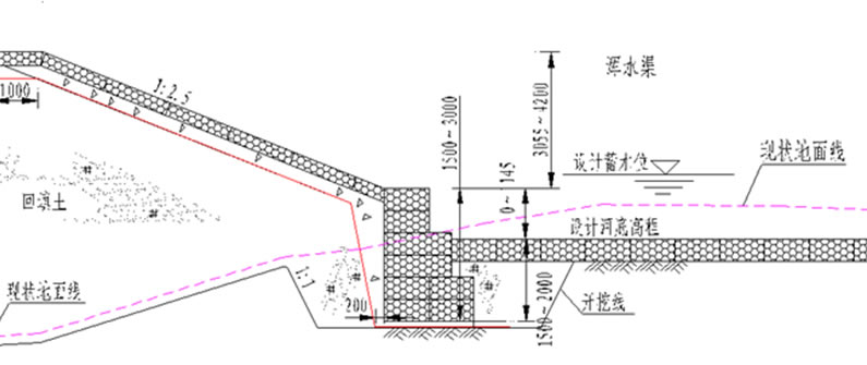 在水位比較高或者是抗洪搶險(xiǎn)期,不適合造圍堰施工的情況下,可將擋墻下部的網(wǎng)墊改為網(wǎng)袋或大塊石,以營(yíng)造比較有利的施工環(huán)境。