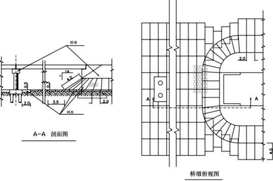 橋址所在河段,河岸的凹岸逐年迎受水流沖刷,會(huì)使河岸不斷地坍塌。為保護(hù)橋梁和路堤安全,須在凹岸修筑防護(hù)建筑物。此外,因設(shè)橋會(huì)引起河水流向變化,沖刷河岸而危及農(nóng)田和村鎮(zhèn)時(shí),須在河岸修建防護(hù)建筑物。對(duì)于一些在軟地基上的橋梁,對(duì)其橋基要進(jìn)行防護(hù),一般在橋梁橋墩處,水流突然收縮,流速也會(huì)突然增大,對(duì)橋基的沖刷也相比河道其他地方嚴(yán)重,采用生態(tài)格網(wǎng)透水柔性結(jié)構(gòu)護(hù)基,使橋附近的岸坡具有更強(qiáng)的防沖性能,能大大提高橋的穩(wěn)定性。