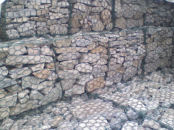 石籠網(wǎng)是使填石固定就位的鐵絲或聚合物絲網(wǎng)格式制作物。鐵絲籠是由鐵絲編織的網(wǎng)格或焊接而成的結(jié)構(gòu)物。這兩種結(jié)構(gòu)可以是電鍍的,編織的鐵絲箱可另外涂上PVC。用抗風(fēng)化堅(jiān)硬石塊作填料,它在石箱或石籠沉排中不會(huì)因磨蝕而很快破碎。裝有不同類(lèi)型的塊石的石籠有不同的特性。多角的塊石能相互很好地聯(lián)鎖在一起,用其填裝的石籠不易變形。
