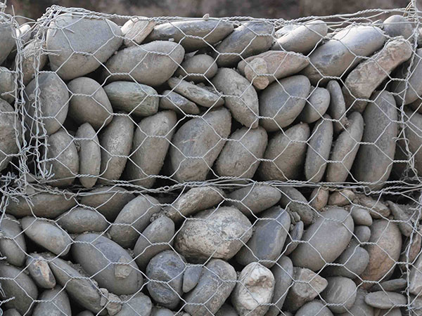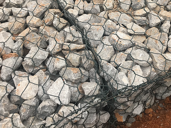 箱型石籠由大規(guī)格六角網(wǎng)聯(lián)結(jié)而成,施工中只需將石塊裝入籠中封口即可。